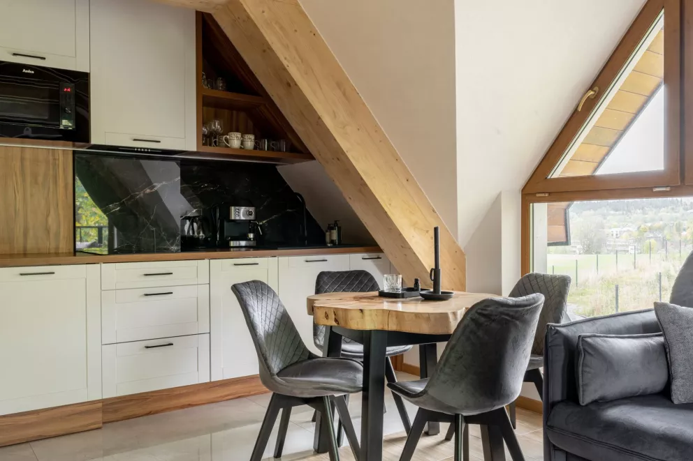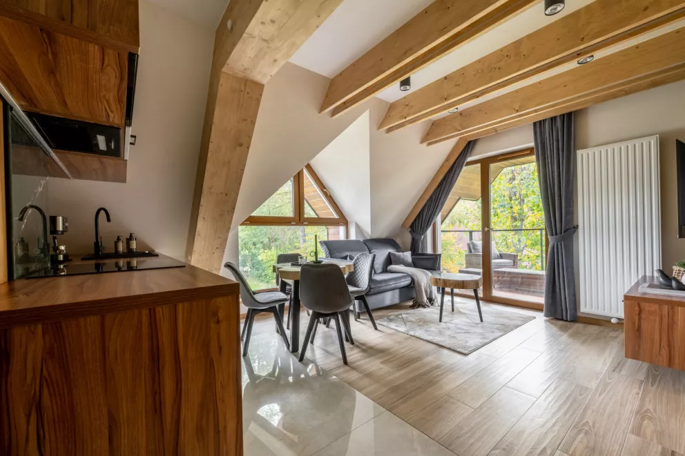 Jasne, przytulne i komfortowe przestrzenie zapewnią Państwu odpoczynek, a subtelne elementy regionalne wieńczące wnętrza wprowadzą ducha Podhala.